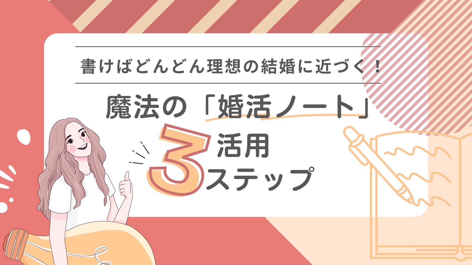 …と感じてしまったあなた! 一見ひと手間かかってしまうように思われますが、簡単な3つのステップで、 婚活ノートは単なるメモ帳ではなく、あなたの婚活を成功に導く強い味方になってくれるんです。 この記事では婚活ノートを使って婚活の成功率をグッとアップさせる3つのステップをご紹介! 婚活ノートを使って成功率アップ!簡単な3つのステップ よくある婚活ノートの記事って、「記録」や「振り返り」ばかり強調されがち。 でも実際は、“モヤモヤした感情の整理”や“自己肯定感の回復”もできる隠れた優れものなんです。 婚活って、 ...